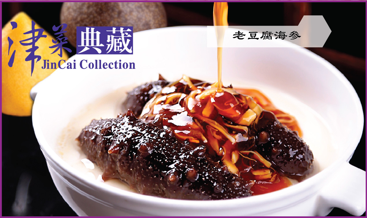 津菜典藏创新传统菜,将海参与老豆腐融合,升华了传统小吃。《本草纲目拾遗》中记载:海参,味甘咸,补肾,益精髓,摄小便,壮阳疗痿,其性温补,足敌人参。与富含蛋白质的豆腐相结合,堪称初冬温补的最佳搭档。